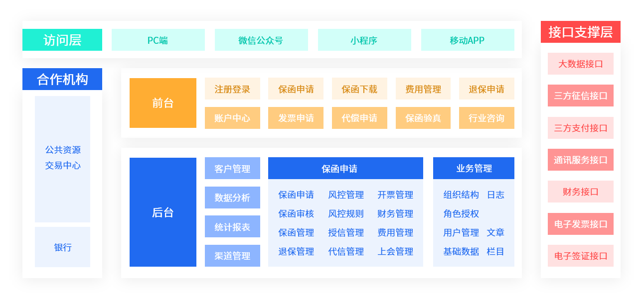 yl23455永利科技电子保函管理系统是针对担保公司投标保函业务接入招标平台的需求,满足招标平台和担保业务的灵活对接管理,通过互联网帮助客户对接担保公司、银行、保险等金融机构,实现了保函全流程电子化,用户可在线办理投标、履约等保函,一键申请、当天出函、查询保函真伪、保函进度、审核、支付、出单、退保、偿付等全流程线上办理。可为公共资源交易中心、政府投标平台等平台提供电子保函担保业务、全流程留痕追溯、数据统计分析等整体解决方案。基于银行系统架构设计,功能全面,多终端覆盖,快速交付。