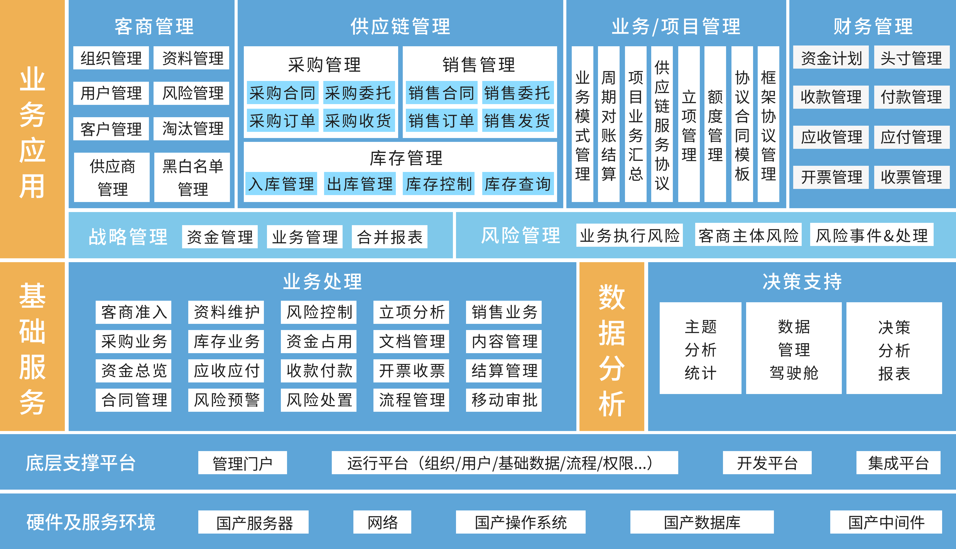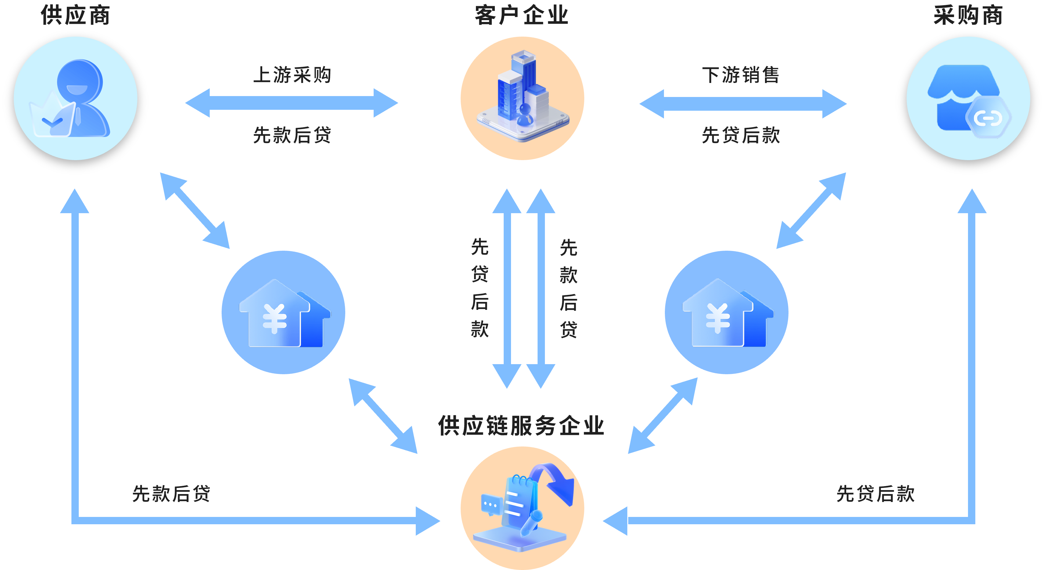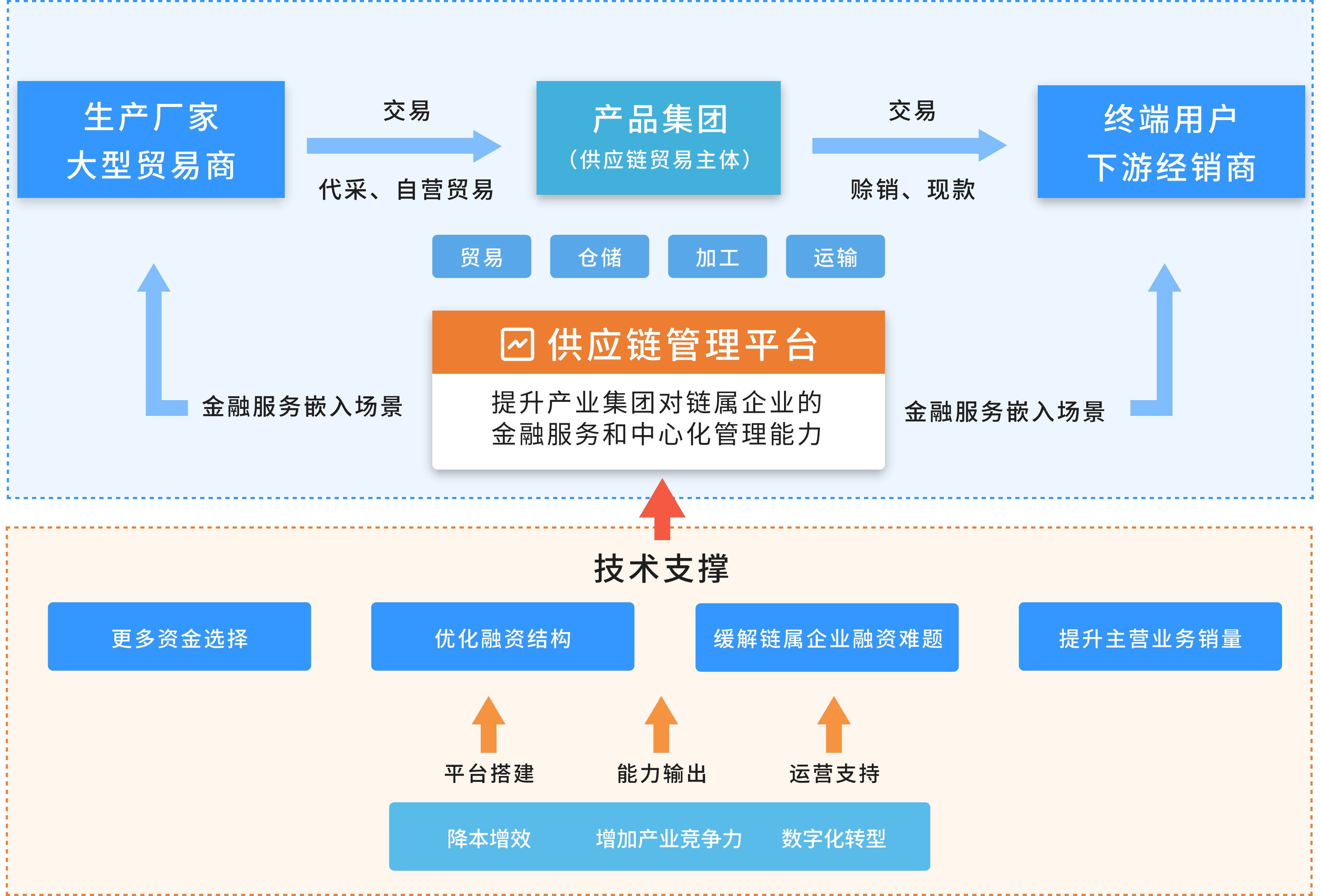 yl23455永利供应链管理(SCM)系统,围绕产业链上采购、交易、销售、支付、仓储等诸多贸易背景,借鉴yl23455永利科技多年的业务沉淀与积累,运用区块链、大数据、云计算、人工智能等金融科技能力,从供应链产业链整体出发,通过“金融科技+供应链场景”方式及全线上化的业务流程,整合信息流、物流、资金流等信息,构建供应链核心企业、上下游企业、金融机构、第三方机构一体化的金融供给和风险防控体系,提供一站式智慧供应链协同平台。