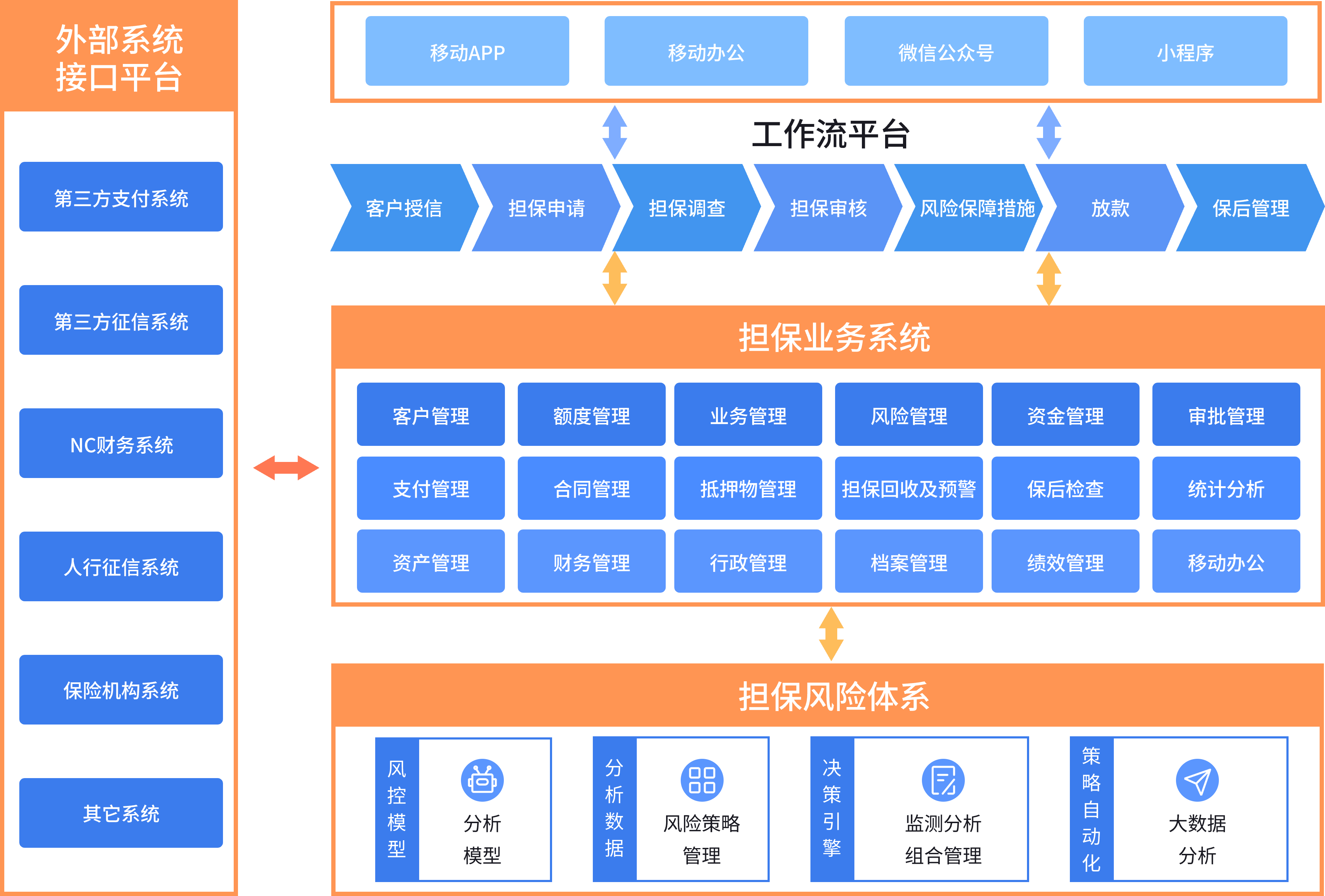 yl23455永利科技针对担保公司面临的挑战及业务模式,满足多种类担保业务管理需求,结合融资担保的监管要求及行业特点;为担保公司量身锻造了一套全终端的担保业务管理系统,有效地解决了担保公司业务运营过程中面临的诸多挑战。通过数字营销、担保业务管理、可视化流程管理、智能数据决策分析、强大风控体系让业务更智慧高效。基于银行系统架构设计,功能全面,多终端覆盖,提供PC+移动端 (Android\iOS)全终端产品系统,快速交付,节约成本。